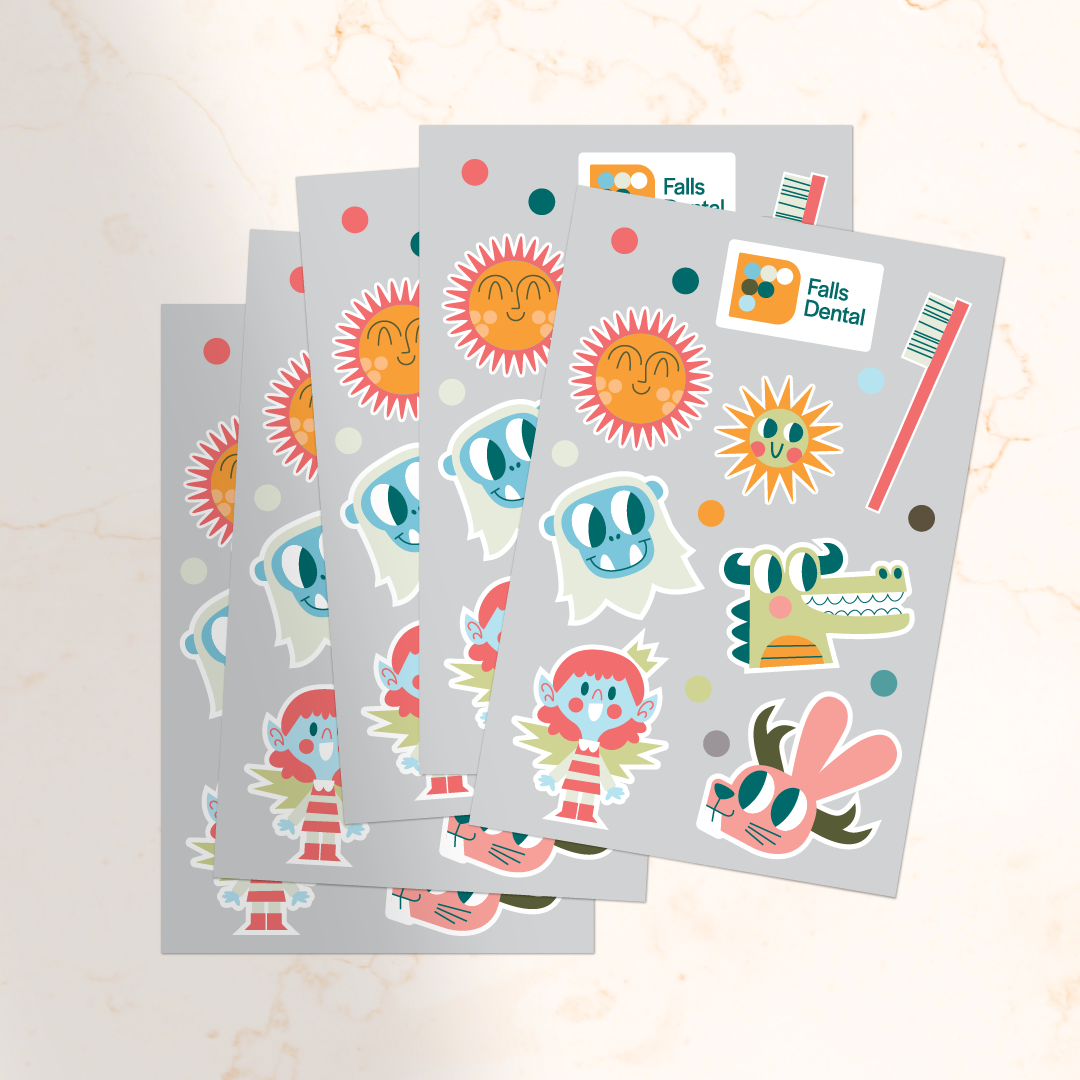 That said, we weren’t afraid to nudge the brand a bit more childlike when it made sense. For example, to help Falls Dental connect with more young families, we designed a cast of mythical characters—including a Jackalope, Yeti, and, of course, Tooth Fairy—who demonstrate that healthy smiles come in all shapes and sizes.