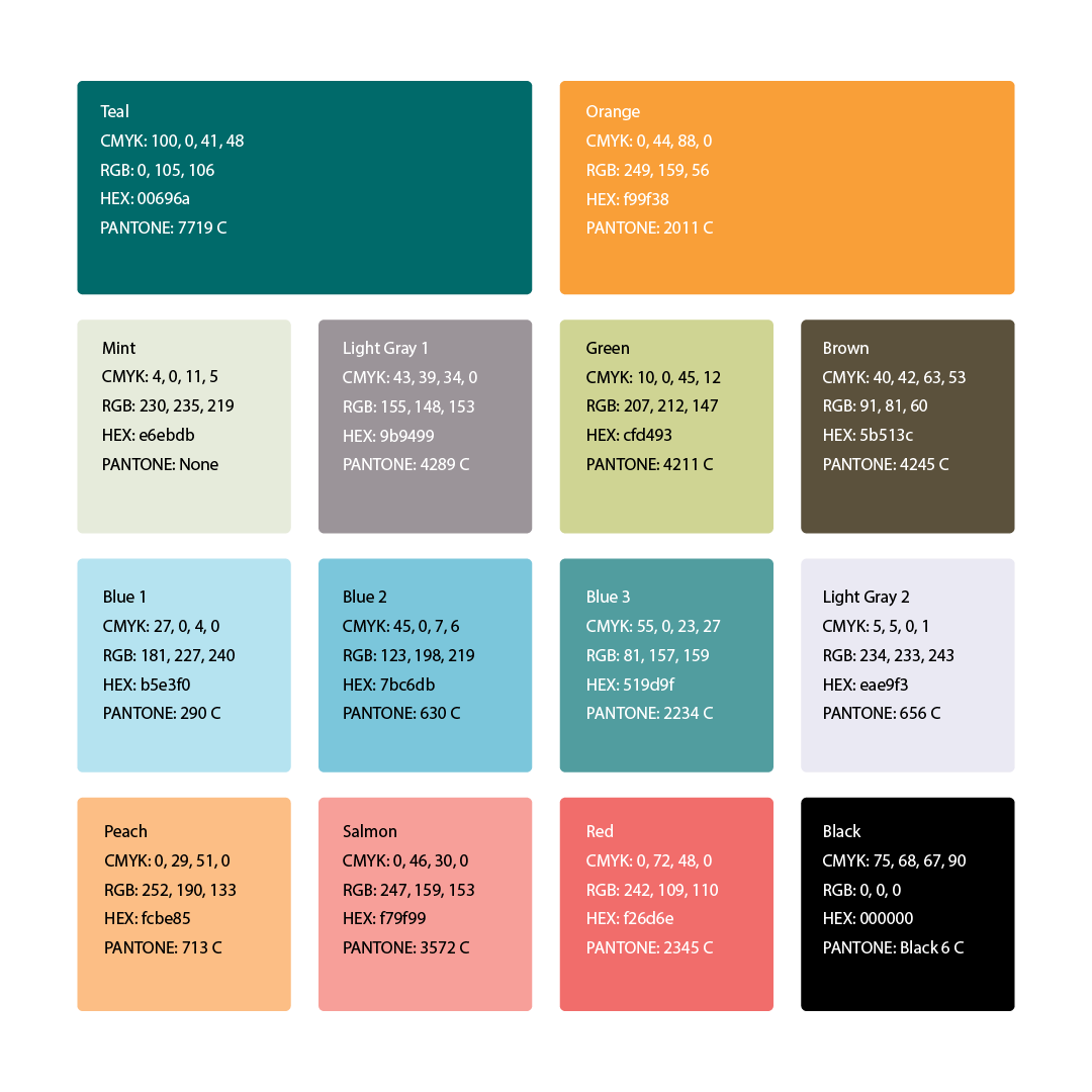 Inspired by the mid-century style of their new space, our visual identity incorporates bright colors and simple shapes that feel fresh, welcoming, and playful without looking childish.